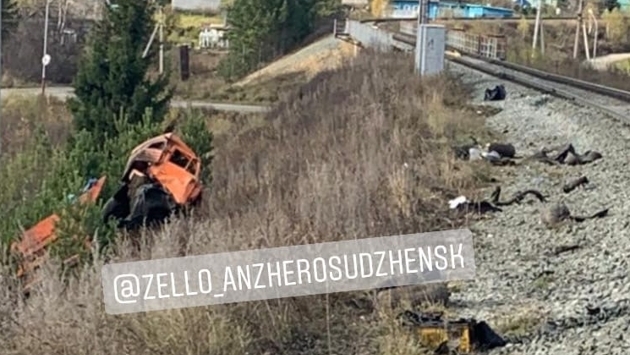 Поезд в Кузбассе уничтожил стоявший на рельсах "КамАЗ"