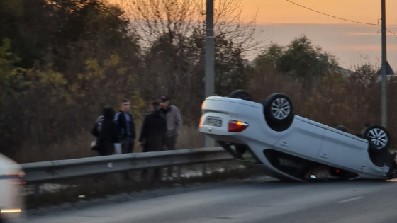 Авария произошла 11 октября. В результате автомобиль перевернулся на крышу. Из-за происшествия образовалась пробка в обе стороны.