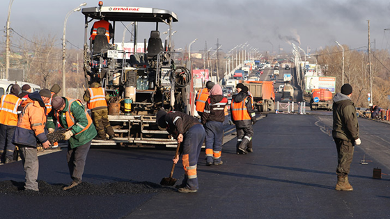 В Иркутске на путепроводе по улице Джамбула начали асфальтировать проезжую часть