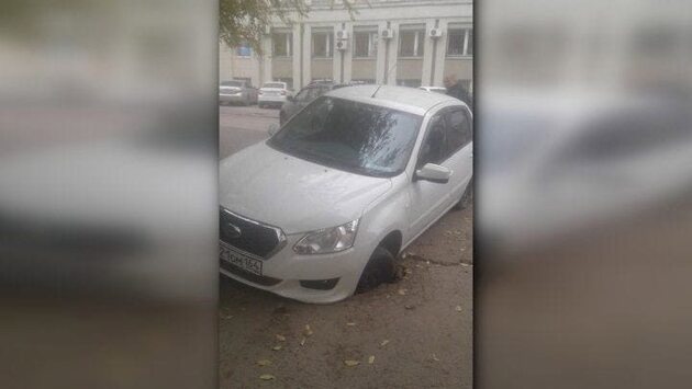 Администрация отреагировала на ситуацию с провалившейся в яму машиной в центре Саратова