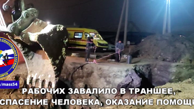 При проведении земляных работ в Ленинском районе обвалился край траншеи и двух рабочих навалило слоем грунта — одного целиком, а второго по пояс.