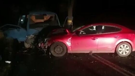 Автомобиль Mazda 3 наехал на косулю. После столкновения с животным легковушку отбросило в дерево, а затем вынесло на встречку прямо в Nissan Vanette.