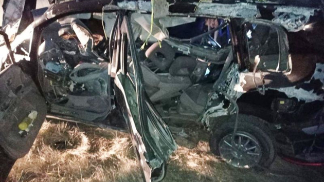 Водитель компактвэна Mazda Premacy пошел на обгон, но врезался на встречной полосе в автоцистерну.