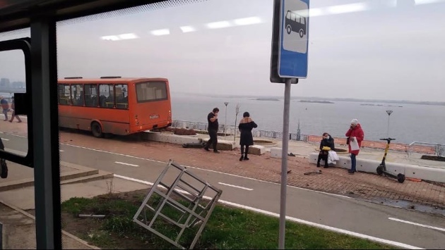 Появилось видео ДТП с маршруткой, которая пробила забор на Нижневолжской набережной