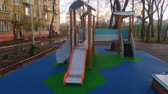 На детской площадке в Прудовом проезде заменили резиновое покрытие