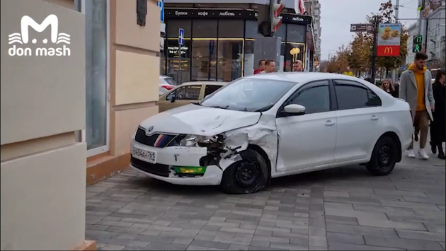 В центре Ростова иномарка едва не врезалась в здание МФЦ