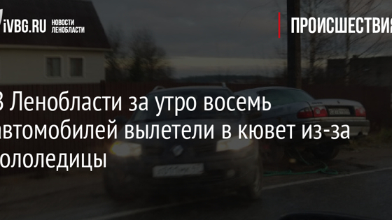 В Ленобласти за утро восемь автомобилей вылетели в кювет из-за гололедицы