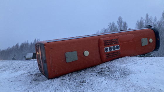 Внутри автобуса было три человека: мужчина за рулем и двое пассажиров — сменные водители. Один из них получил травму. Предварительно, причиной аварии стало то, что водитель не учел погодные условия и выбрал для движения неверную скорость.