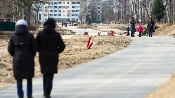 Подрядчик завершает работы. Теперь от памятника-самолёта до жилого микрорайона можно дойти пешком. На Лукашова также начали обустраивать тротуар.