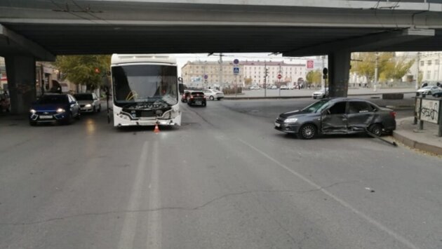 Как сообщили в пресс-службе регионального МВД, в 7 утра водитель за рулём автобуса «Волгабас», двигаясь по Коммунистической улице напротив дома №18, проехал на красный свет и врезался в автомобиль «Лада Гранта».