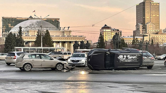 На площади Ленина автомобиль перевернулся на бок — видео с места ДТП
