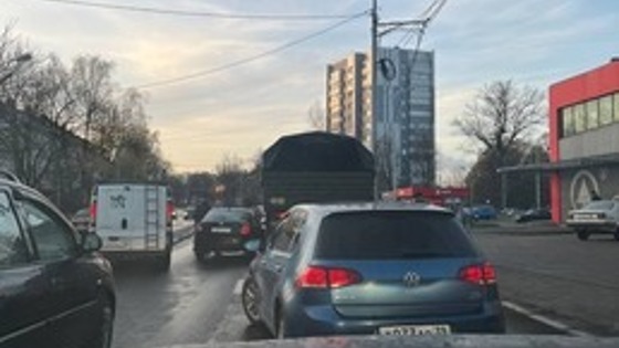 Машины перекрыли обе полосы в направлении центра города. Транспорт скопился до Окружной.