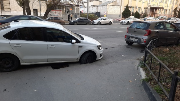 Гравитационная аномалия: машина провалилась под асфальт в центре Ростова