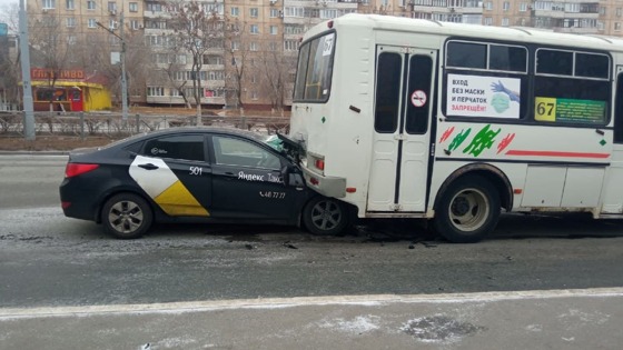 В областном центре произошла автомобильная авария с участием такси и маршрутки. Легковушка врезалась в автобус в районе остановки «Оренбургского казачества» на ул. Чкалова.