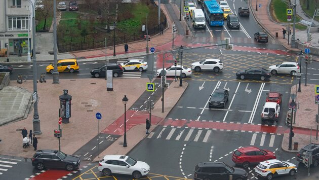 - Двигаться на регулируемых перекрёстках можно только на разрешающий сигнал. Если вы перемещаетесь по правому ряду, то при манёвре обязаны вернуться так же в правый ряд.