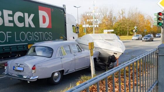 В Германии на трассе столкнулись катер и раритетная советская «Волга»