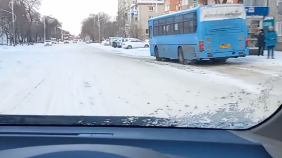 Он снял на видео проезд как раз по улице Ленина, показав слой снега на проезжей части.
