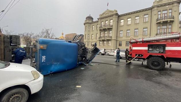 Напомним, 34-летний водитель Freightliner двигался в направлении Пушкинской и опрокинулся при повороте. В результате ДТП пострадали шесть легковых авто.