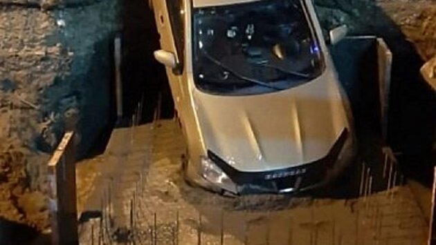 Иномарка упала в яму на дороге в Хабаровске