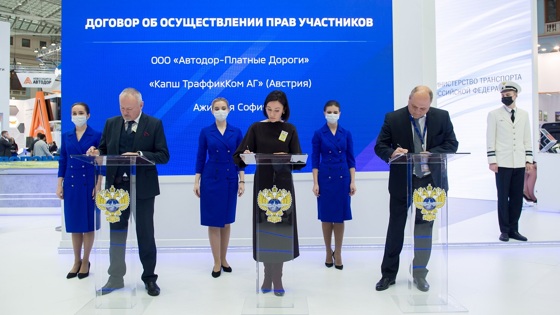 Традиционно во время ключевых мероприятий «Транспортной недели» на одной площадке собираются представители власти и бизнес-сообщества, проходят деловые сессии для обсуждения главных проблем и перспектив развития транспортной сферы и заключаются соглашения о сотрудничестве между представителями крупнейших отраслевых компаний. Компании ООО «Автодор – Платные Дороги» и ООО «Капш Траффикком Руссия» 17 ноября 2021 года в рамках выставки «Транспорт России» подписали соглашение о создании предприятия «Автодор – Технологии». Подписи в документе поставили генеральный директор компании «Автодор – Платные Дороги» Дмитрий Юрьевич Дунаев, генеральный директор «Капш Траффикком Руссия» Борис Александрович Борисов и София Ажицкая, закрепив в договоре намерение о поставке транспондеров, оборудования и услуг, аппаратных и программных решений в области электронного взимания платы и интеллектуального управления дорожным движением, производимых с использованием опыта и технологий компании «Капш Траффикком Руссия» на территорию Российской Федерации, и последующем формировании локального производства транспондеров в порядке и условиях, согласованных сторонами. Участники подписания отметили важность данного этапа в дальнейшем развитии многолетнего сотрудничества двух компаний для организации выпуска отечественных устройств с необходимым уровнем качества и гарантийным обслуживанием, а также обеспечения инфраструктуры складирования и логистики. Соглашение пройдет одобрение в Федеральной антимонопольной службе Российской Федерации. Компания «Автодор – Платные Дороги» осуществляет операторскую деятельность по обеспечению обслуживания трасс, находящихся в доверительном управлении Государственной компании «Автодор», и является одним из крупных эмитентов транспондеров в России. Сотрудничество с ООО «Капш Траффикком Руссия», международным поставщиком высококачественных интеллектуальных транспортных систем, позволит удовлетворить возрастающий с каждым годом спрос среди автомобилистов на транспондеры и повысит качество предоставления клиентских сервисов, предлагаемых пользователям платных дорог.