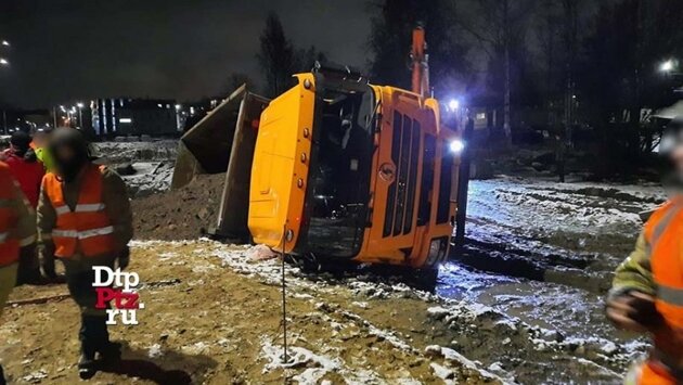 В карельской столице при схожих обстоятельствах произошло второе за неделю необычное ДТП с участием спецтехники. Самосвал, который работал на стройке, упал в траншею. Снимки с места происшествия опубликовал сайт dtp.ptz. В ночь на 19 ноября самосвал опрокинулся в строительную яму. Инцидент произошел в 4:20 между домами № 17 и 27 по улице Федосовой. Там сейчас проводятся работы в рамках реконструкции улицы Куйбышева и обустройства улицы Михаила Иссерсона. По предварительным данным, ЧП произошло с груженым самосвалом при проведении погрузочно-разгрузочных работ. Ликвидацией последствий происшествия занимались пожарно-спасательные подразделения Петрозаводска. Как сообщили в ГИБДД, за рулем самосвала находился 66-летний мужчина. Обошлось без серьезных травм. Водителю оказали разовую медпомощь. Напомним, вчера аналогичное ДТП произошло во дворе дома № 12 на улице Шотмана. Груженый песком самосвал упал в строительную яму, вырытую для прокладки сетей к новому дому. Как позже выяснилось, под машиной провалилась земля. ГИБДД вызвали жильцы дома. По информации ГИБДД, водитель грузовика во время инцидента не пострадал.