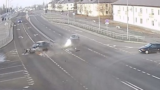 Два автомобиля столкнулись на пустой дороге, из-за чего их закрутило в синхронном «танце».