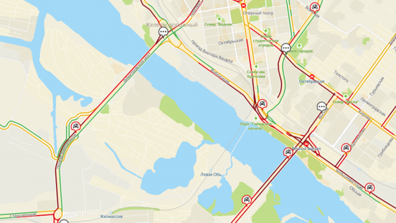 Вечером 19 ноября Новосибирск, что уже традиционно для пятницы, сковали длинные автомобильные пробки. Движение встало на Красном проспекте, Октябрьском мосту, Дмитровском мосту в направлении левого берега, а также на Большевистской и Кирова.