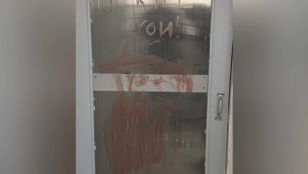 На одном из опубликованных фото видна надпись, оставленная кровью на двери подъезда «I kill you», что переводится как «Я убью тебя».