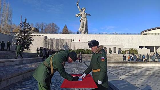 Первые новобранцы роты почетного караула мотострелкового соединения ЮВО приняли присягу на Мамаевом кургане