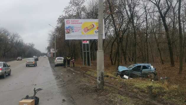 Машину разбила, но сама не пострадала: в Шахтах женщина-водитель врезалась в столб
