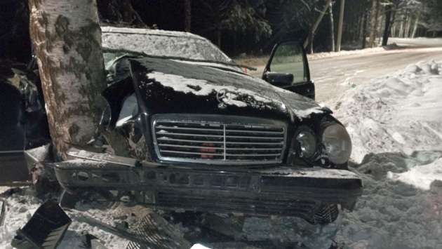 Дорожный инцидент произошел накануне в 03:40 на ул. Бурмагиных, 52: водитель автомобиля «Мерседес» допустил съезд с дороги и врезался в дерево.
