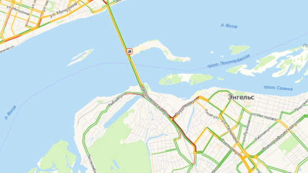 Сегодня, 9декабря, утром намосту Саратов-Энгельс произошла авария, из-за которой движение всторону Саратова оказалось заблокировано. Соответсвующая информация размещена насервисе «Яндекс.Пробки».