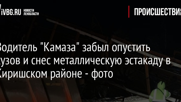 Водитель "Камаза" забыл опустить кузов и снес металлическую эстакаду в Киришском районе - фото