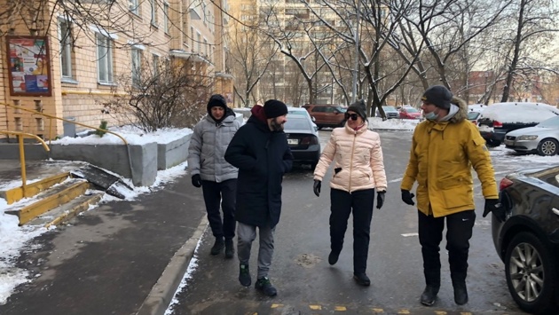 11 декабря глава управы Руслан Ямалдинов с активными жителями района, муниципальным депутатом Светланой Кобзарь и представителями коммунальных служб встретились на традиционном обходе района. Во время обхода проверили выполнение работ по программе безопасности дорожного движения и обсудили пути решения проблемы парковки большегрузного транспорта во дворе по адресу ул. Большая Черкизовская д. 32, корп. 1. Все выявленные проблемы взяты в работу. Фото: Руслан Ямалдинов