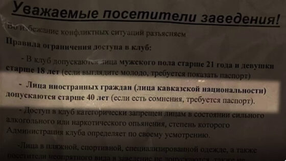 «Лица иностранных граждан (лица кавказской национальности) допускаются старше 40 лет (если есть сомнения, требуется паспорт)», — говорится в правилах.