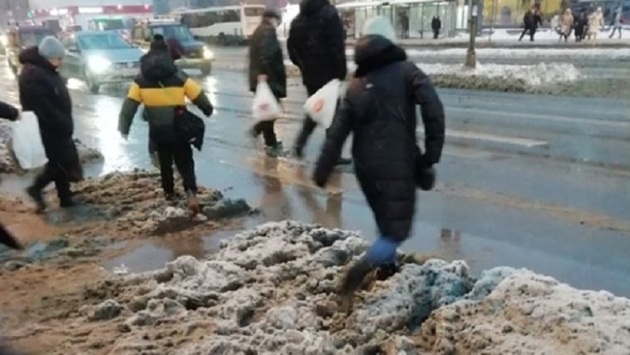 Петербуржцы жалуются Смольному на лужи и «снежную кашу» на улицах и во дворах
