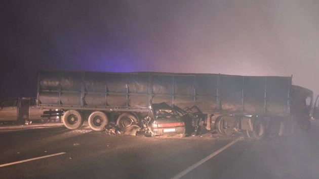 Авария произошла вечером 16 декабря на 293-м километре трассы «Кавказ» на территории Андроповского округа. По предварительным данным, водитель грузового автомобиля ERF, совершая разворот в нарушение запрещающей этот маневр линии разметки, а также в условиях ограниченной видимости из-за тумана, спровоцировал столкновение со встречно движущимся автомобилем Toyota Estima, а затем автомобилем ВАЗ-2112, двигавшимся в попутном направлении, сообщает пресс-служба краевого управления ГИБДД.