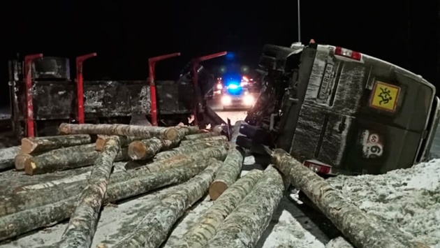 Как сообщили в региональном главке МЧС, автобус столкнулся с бревнами на дороге и завалился на бок. Других подробностей не приводится. По предварительным данным пострадал один человек, водитель сломал руку.