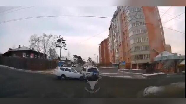 Момент столкновения «Лады» и японского джипа попал на видео, которое опубликовано в Telegram-канале «Сейчас в Чите (18+)».