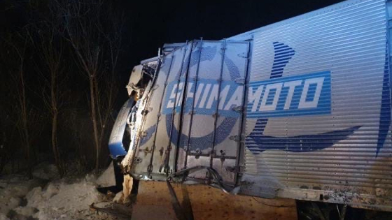 "КамАЗ" превратился в груду металла после аварии на кузбасской трассе