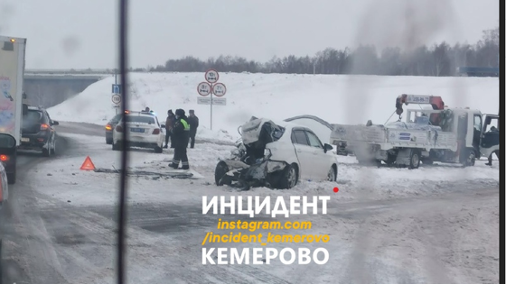 Очевидцы сообщили о ДТП в Прокопьевском районе, в результате которого у легкового автомобиля полностью "сплющилась" задняя часть.