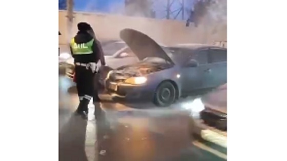 Остановилась на красный и загорелась: в Ростове полицейские потушили иномарку