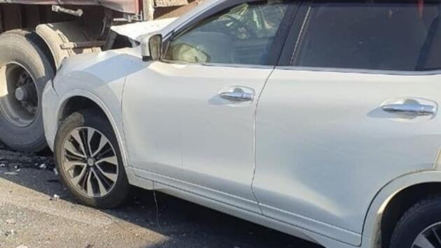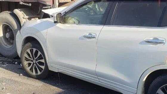 Белый Nissan Xtrail оказался замятым под грузовик, который по неизвестным обстоятельствам врезался в фуру.