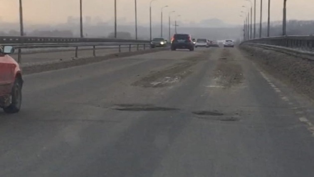Рязанские водители жалуются на ямы на Солотчинском мосту