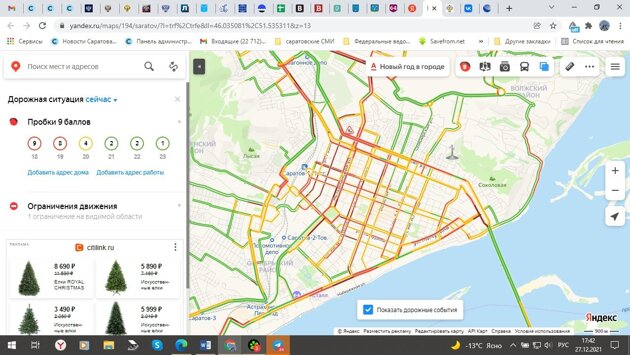 Сегодня, 27 декабря, после пяти часов вечера вСаратове наблюдаются девятибалльные дорожные заторы, сообщает сервис «Яндекс.Пробки».