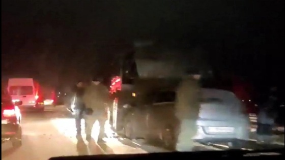 На кадрах можно заметить, что легковушка залетела прямо под грузовой автомобиль.