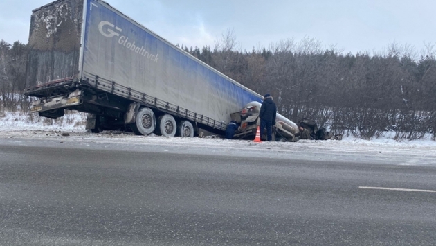 На омской трассе молодой водитель фуры врезался в газовоз, наполненный тремя тоннами взрывоопасного топлива