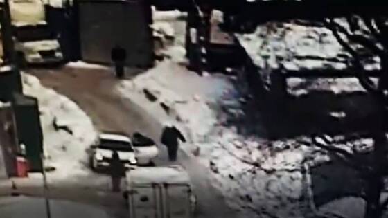 На кадрах можно разглядеть, как на перекрестке останавливается первый автомобиль белого цвета. К нему подходит мужчина, а спустя несколько секунд он возвращается к своей машине — тоже белого цвета.