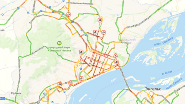 Сегодня, 29 декабря, по состоянию на 17.35 дорожная ситуация в Саратове оценивается на 10 баллов из 10, сообщает сервис «Яндекс. Пробки».
