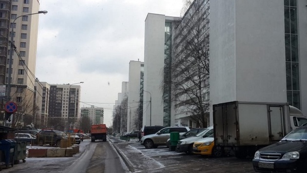 По словам Дмитрия Морозова, сегодня проезд между «Флейтой» и ЖК «Зеленоград Сити» тупиковый, и одна из двух полос дороги занята припаркованными автомобилями. В связи с этим на проезде затруднено движение автотранспорта.